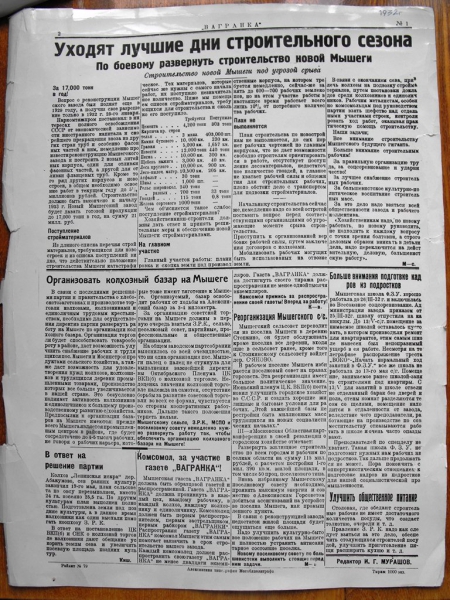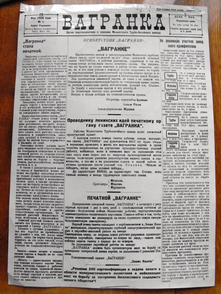 29 мая 1932 года вышел первый номер газеты «Вагранка», изданный силами редколлегии