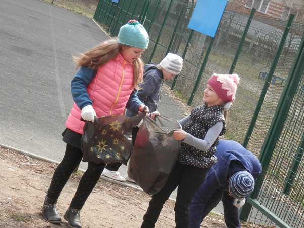 Не остались в стороне и совсем юные жители города. Так, первоклашки из АСШ №1, под руководством своего учителя Марины Дружининой, вышли на уборку школьной территории. Разумеется, не одни — им помогали неравнодушные пенсионеры, технические сотрудники школы. По словам директора общеобразовательного учреждения Татьяны Венюковой, первоклассники показали пример старшим ребятам, которые, порядком, уже и подзабыли, насколько важно соблюдать чистоту окружающей местности. Кстати, малыши из первого класса положили старт не только возрождению традиции участия школьников в благоустройстве родного города, но и целой веренице мероприятий по защите окружающей среды. В этом году руководство школы уже подписало судьбоносный договор о сотрудничестве со всероссийской организацией «Общественный экологический контроль России».