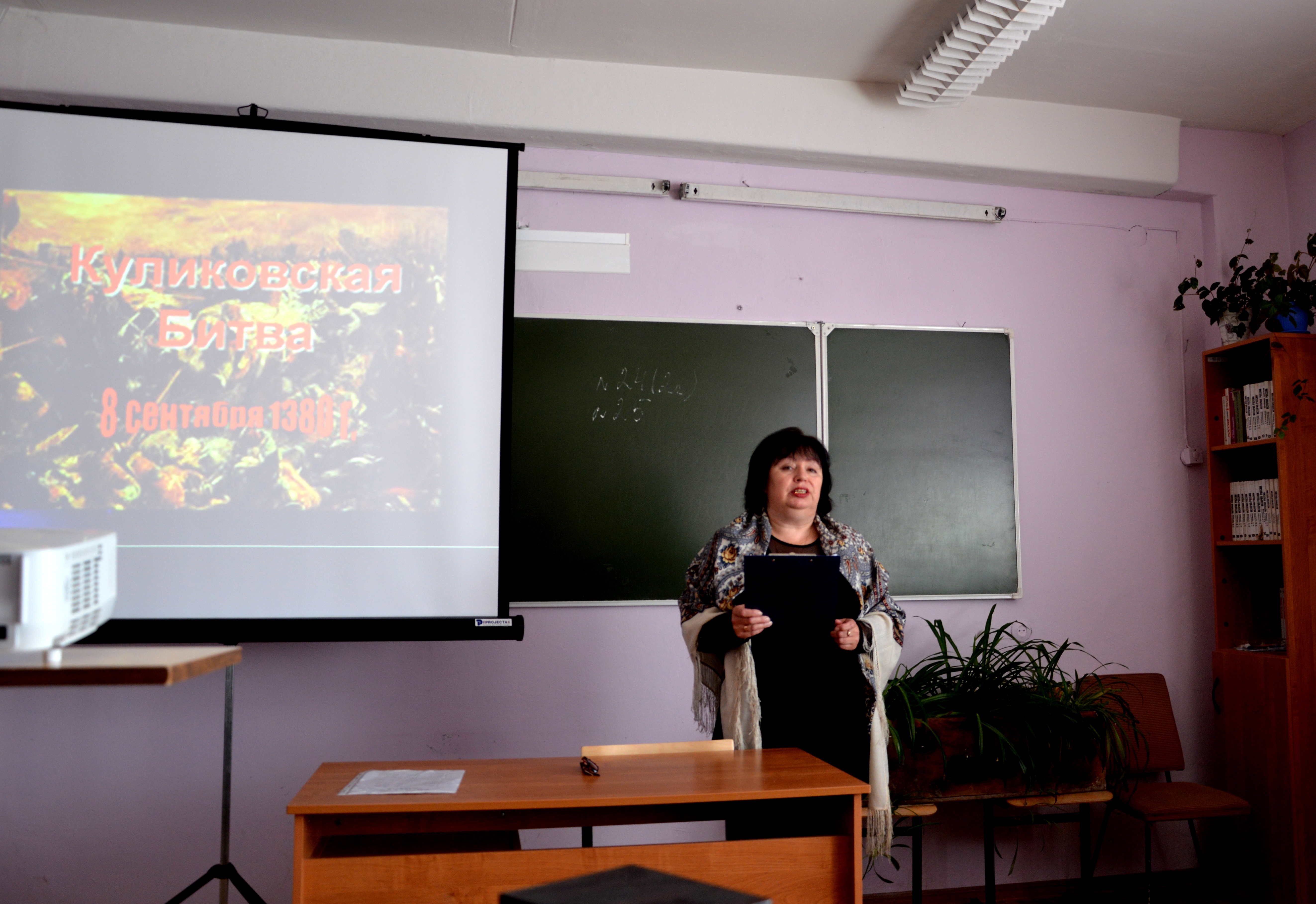 В рамках организованной программы студентам были представлены фрагменты видеороликов о поединке Челубея и Пересвета, о расположении войск на Куликовом поле и иные исторические факты сражения.