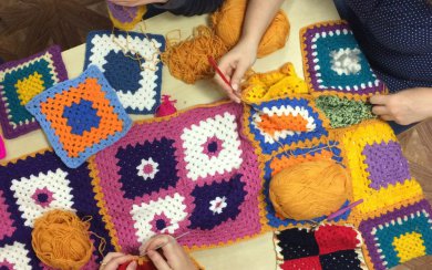 Для тех, кто не умеет вязать, рукодельницы проекта проведут мастер-класс. Плед будет создан в технике «бабушкин квадрат» — составлен из квадратов разных цветов и узоров. Такая техника удобна тем, что желающие могут принести уже связанные дома квадраты, которые затем соединят в пледы. Квадраты для пледа должны быть связаны из акриловой пряжи или пряжи с содержанием шерсти не более 50% (200-300 м на 100 грамм). Связанные лоскуты можно предъявить на входе в качестве бесплатного билета.