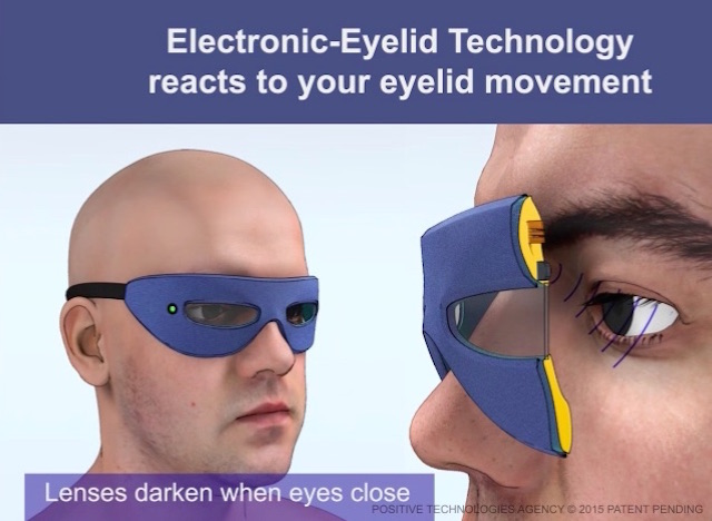 Инженеры компании «Агентство Позитивных Технологий» разработали оригинальную маску-очки с использованием технологии «электронное веко», стекла которой меняют свою прозрачность в зависимости от положения века: при закрытых глазах стекла затемняются, при открытых – становятся прозрачными. Специальные датчики работают с временной задержкой, так что на естественное моргание стекла не реагируют. Главное преимущество маски для сна – снижение психологического стресса и дискомфорта в дальних полетах. Не снимая маски, а просто открыв глаза, можно спокойно посмотреть, что происходит вокруг, а прикрыв – отгородиться от окружающих. Кстати, такая функция очков делает их пригодными для использования не только в самолетах, но и поездах, автобусах, а также в залах ожидания аэропортов и вокзалов.