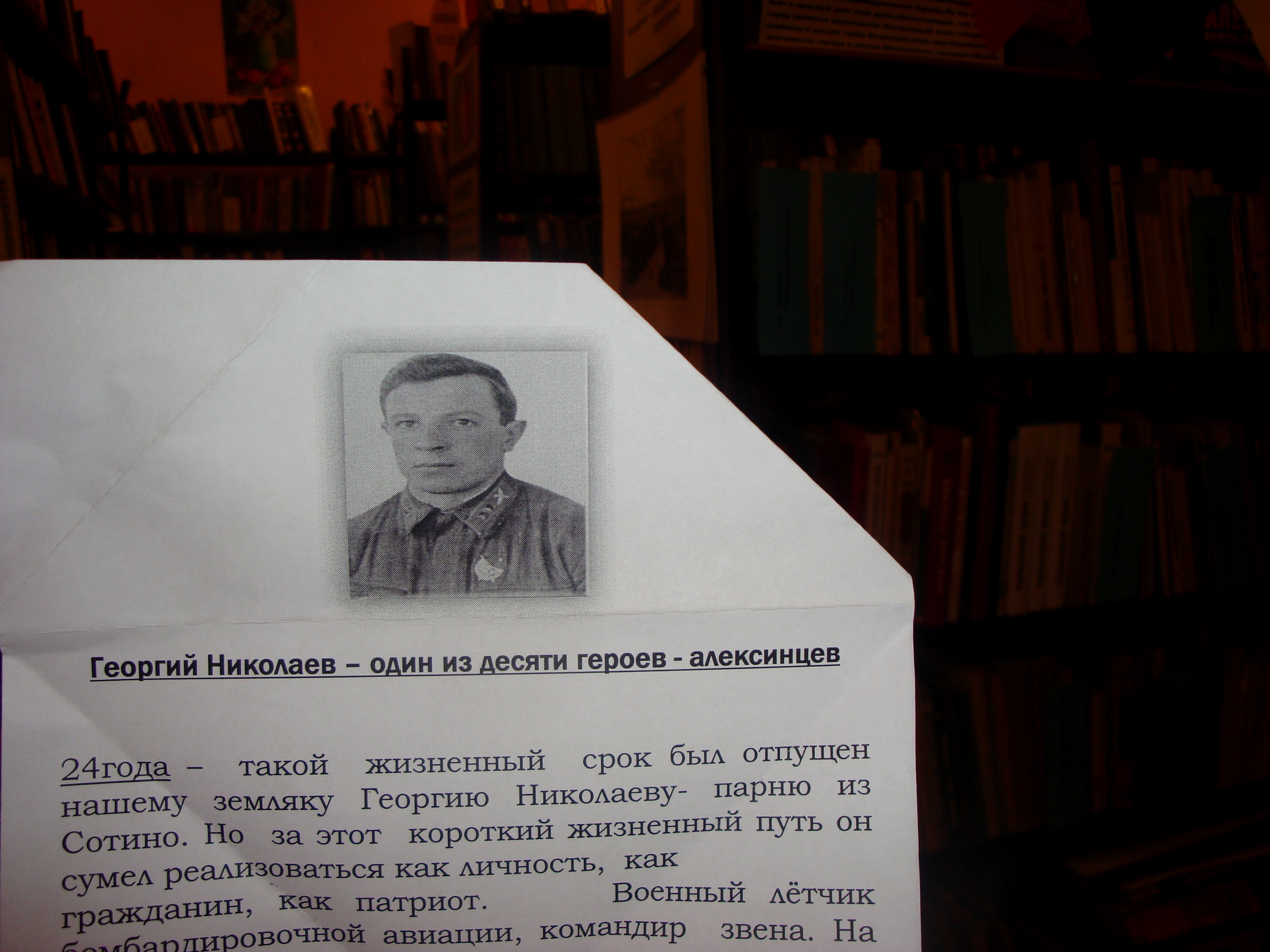 24 года – такой жизненный срок был отпущен нашему земляку Георгию Николаеву- парню из Сотино. За этот короткий жизненный путь он сумел реализоваться как личность, как гражданин, как патриот. Военный лётчик бомбардировочной авиации, командир звена. На его счету десятки разбитых немецких танков, автомобилей, орудий. За подвиги он получил звание Героя Советского Союза.