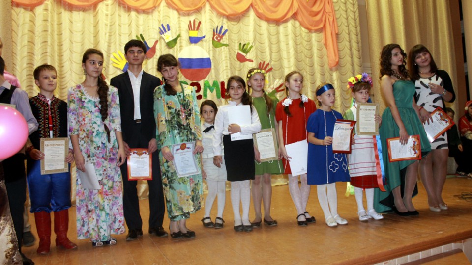 В этот день на одной сцене сосредоточились традиции и культуры более 10 разных национальностей. В номинации «Прекрасное дарить другому» участники вместе с семьями продемонстрировали свои танцы, основные национальные атрибуты. Представители русской культуры познакомили гостей фестиваля с историей возникновения русской матрешки. Представили тульский самовар, русскую гармонь, угощали хлебом-солью как принято на Руси. Его с удовольствием испекла повар школы Валентина Отдельнова.