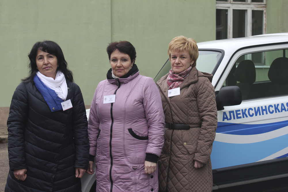 Затем перед главным входом в АРБ №1, где собрались врачи и медсестры больницы, состоялась торжественная церемония: Алексей Дюмин вручил ключи от автомобилей «Нива» сотрудницам Ботнинского, Спас-Конинского и Колосовского сельских фельдшерских здравпунктов.