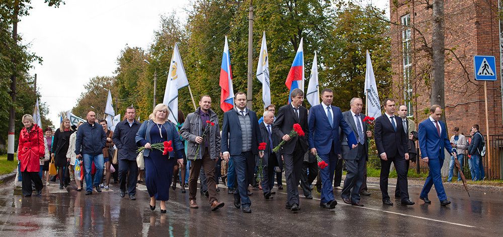Колонна сотрудников предприятий прошла от заводоуправления до КДЦ.