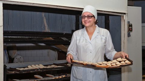 Не меньшим спросом пользуются и сухари. Их выпускают шесть видов. В процессе разработки – седьмой, с цукатами. Пробные выпечки этого вида сухарей, которых до сих пор ни у кого не было, уже проходят. Разработкой рецептуры для новой продукции на хлебокомбинате занимается лаборатория под руководством опытного специалиста Надежды Алениной.