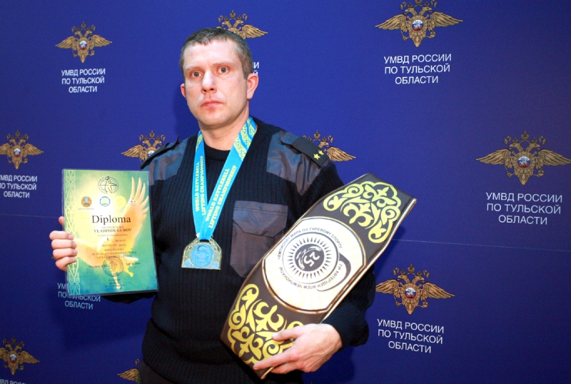 Помощник начальника межмуниципального отдела МВД России «Алексинский» Владимир Гуров стал трёхкратным чемпионом мира по гиревому спорту. На этот раз ему не было равных на чемпионате мира, проходившем в Казахстане с 26 по 30 октября.