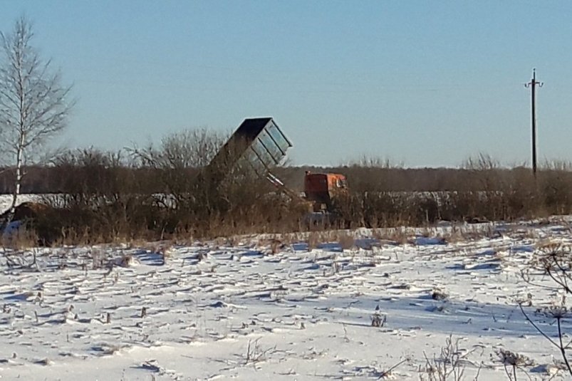 Подрядчик, демонтирующий в Алексине туберкулезный диспансер, вывозит мусор под Колюпаново