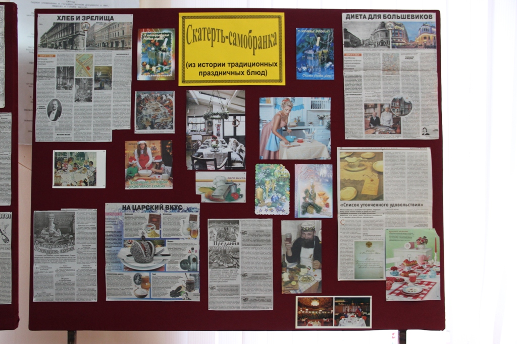 Рассказали и о В.Похлебкине, написавшем о еде 50 книг, и о Е.Молоховец - авторе известной кулинарной книги. Много интересного узнали гости музея и о появлении самой первой кулинарной книге в мире. На выставке были представлены книги о здоровой и вкусной пище разного периода, начиная с 30-ых годов ХХ века. Особый интерес вызвала «Поваренная книга С.Толстой», в которой автор записывала рецепты, раскрывающие традиции семьи Толстых.