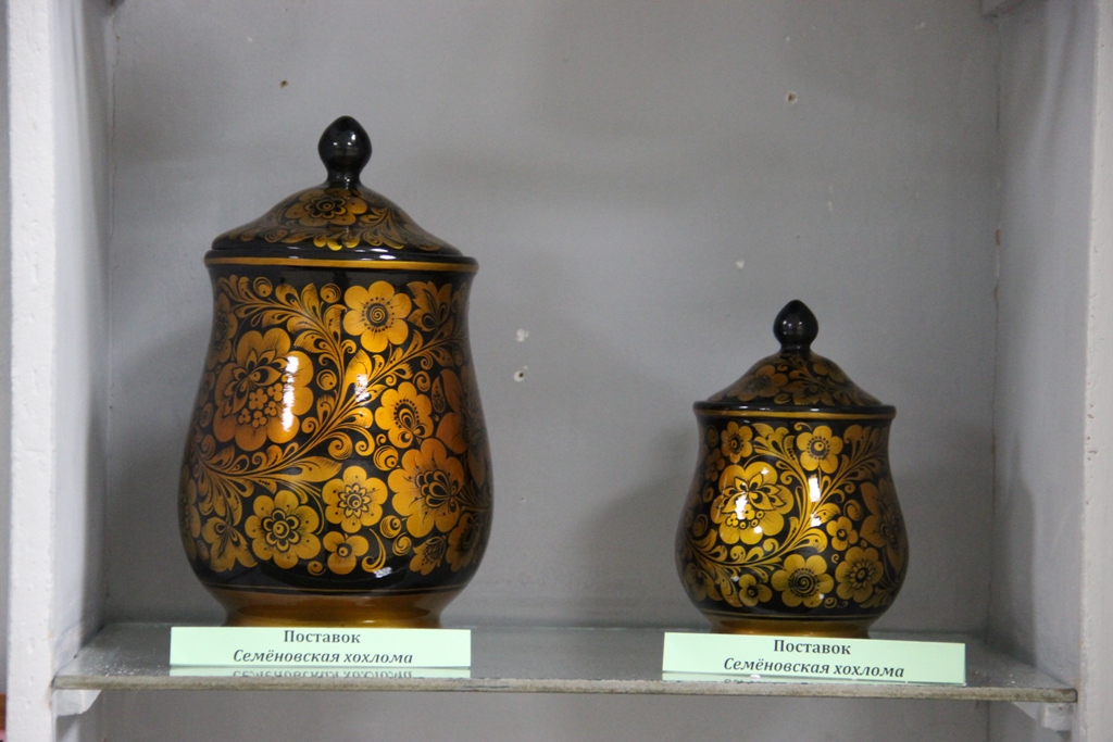 На выставке можно увидеть художественные изделия из бересты, расписную деревянную посуду, расписные токарные изделия и многое другое.