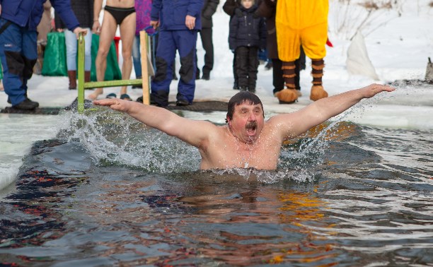 21 человек прыгнул в ледяной пруд в Алексинском районе