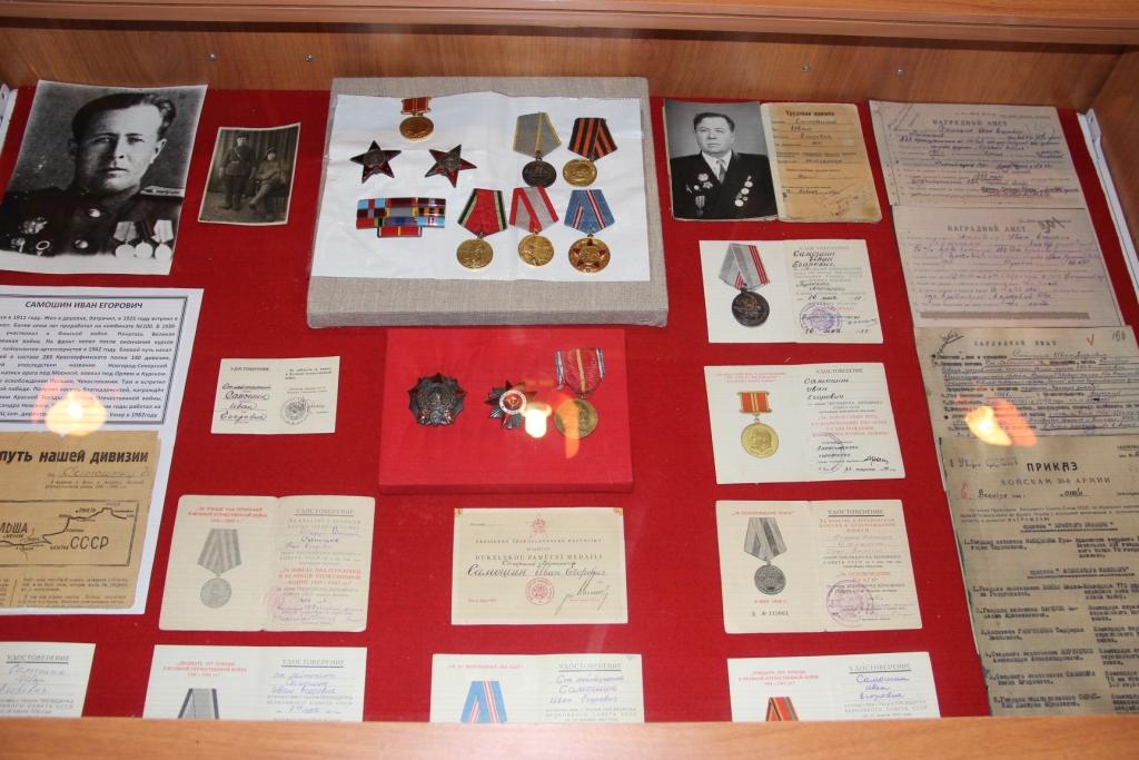 В Алексинском художественно-краеведческом музее открылась новая выставка, посвященная празднованию 72-й годовщины Великой Победы. На выставке представлены фотографии, документы, награды из музейной коллекции, рассказывающие об алексинце, участнике Великой Отечественной войны 1941-1945гг. Иване Егоровиче Самошине. Коллекцию предметов передал в дар музею его сын, выпускник алексинской МБОУ «СОШ №11», в настоящее время проживающий в Москве Валерий Самошин.
