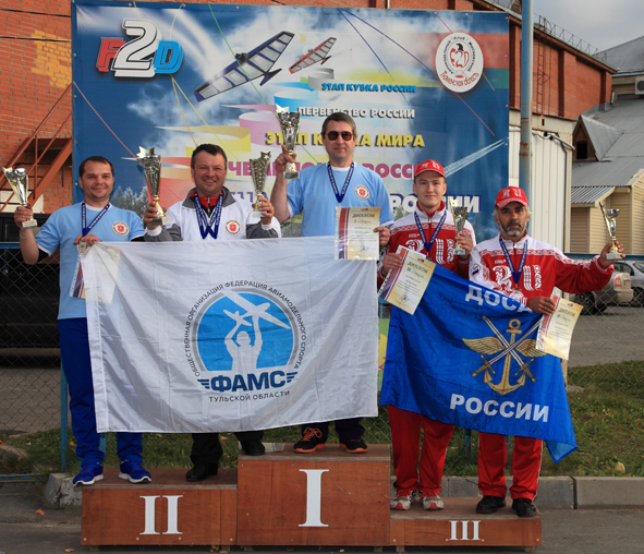 В составе команды федерации авиамодельного спорта нашей области: пилоты, мастера спорта России международного класса Александр Шалаев, Андрей Беляев, Юрий Моисеев — руководитель федерации, тренер команды и механик .