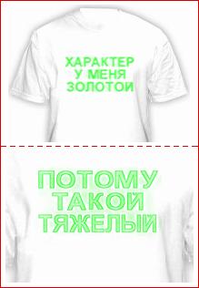 Яркие и оригинальные футболки лучший подарок на любой праздник! Уникальность такой футболки заключается в следующем: надпись состоит из двух: вблизи виден один текст, издали – другой. Можно выбрать себе футболку с готовой надписью, а можно нанести на нее свой оригинальный текст.