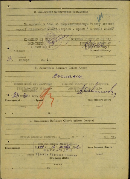 Архивные материалы предоставленны Общедоступным электронным банком документов «Подвиг Народа в Великой Отечественной войне 1941-1945 гг.»